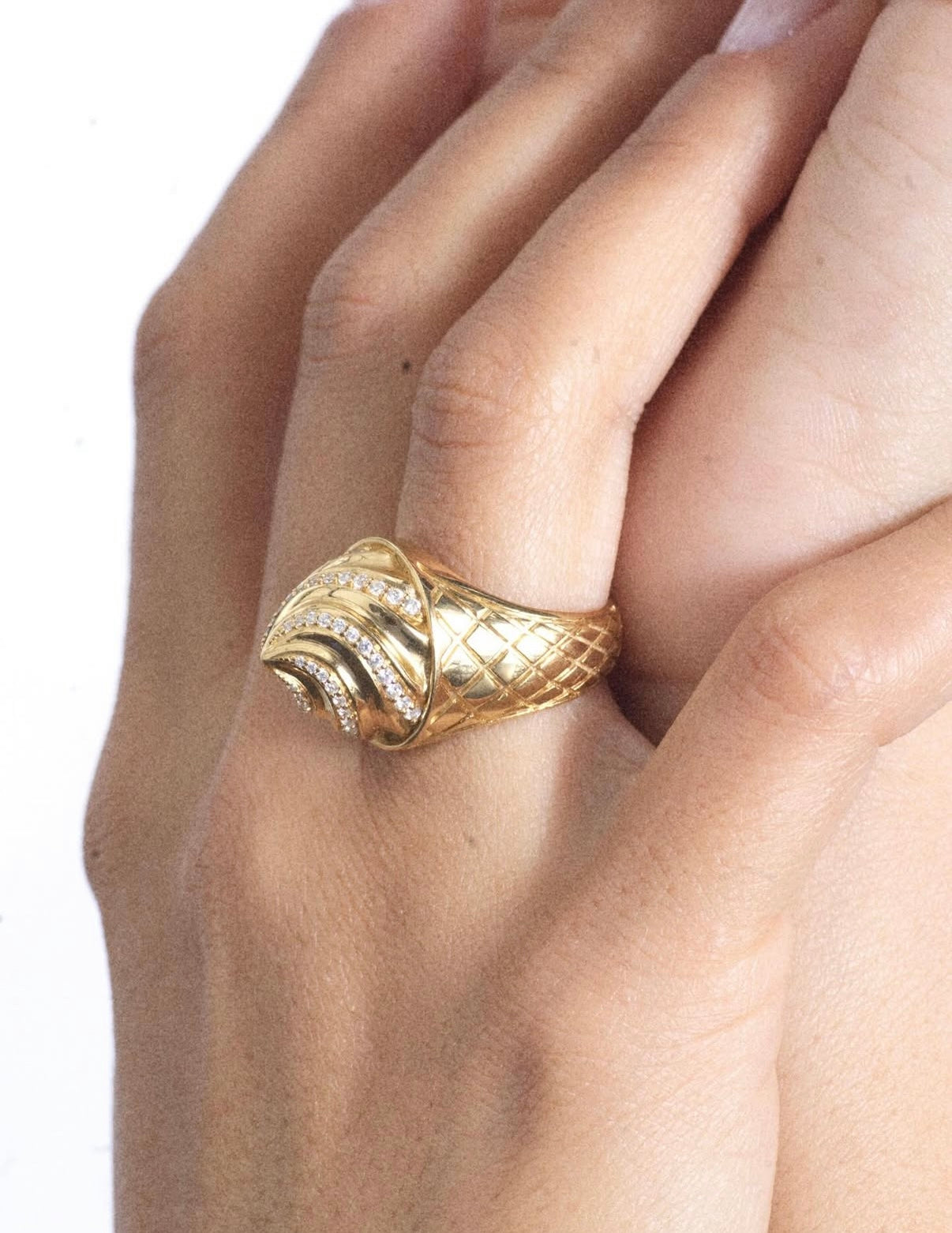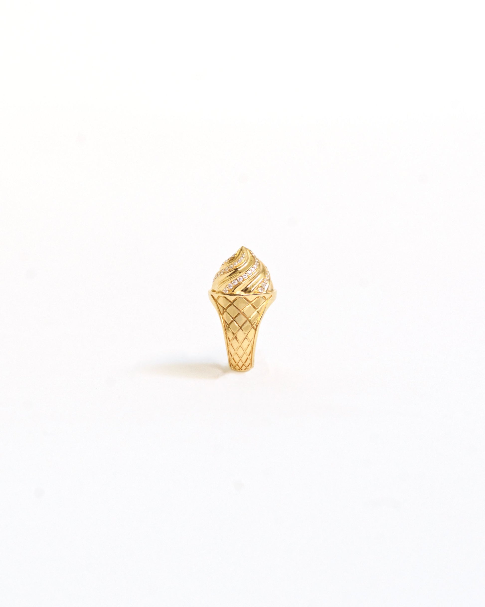 A golden cone of pure joy — topped with a swirl of pavé sparkle, this playful ring captures the sweetness of life’s simplest pleasures.